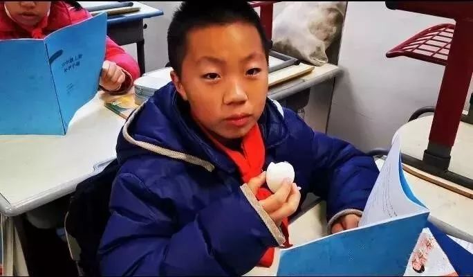 “没想到第一个到教室还有鸡蛋吃,很快乐、很温暖。” 随后,卢炜钒同学也来到了教室,相同兴奋地到讲台上领取了鸡蛋,回到座位上晨读。