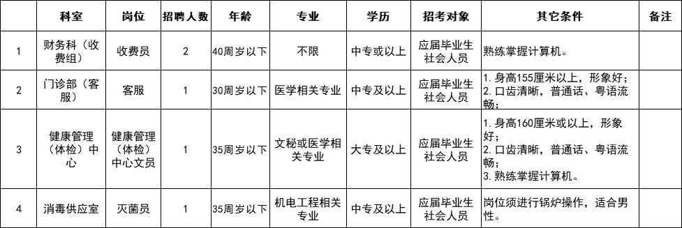 1. 此次招聘职位属劳务差遣作业人员,经面试选用的人员,与劳务差遣公司签定劳动合同,由劳务差遣公司差遣至用人单位作业,差遣期限为1年(自签合同为准)。1年期满用人单位依据南边医科大学顺德医院隶属陈村医院实践组织,决议是否持续续约选用。