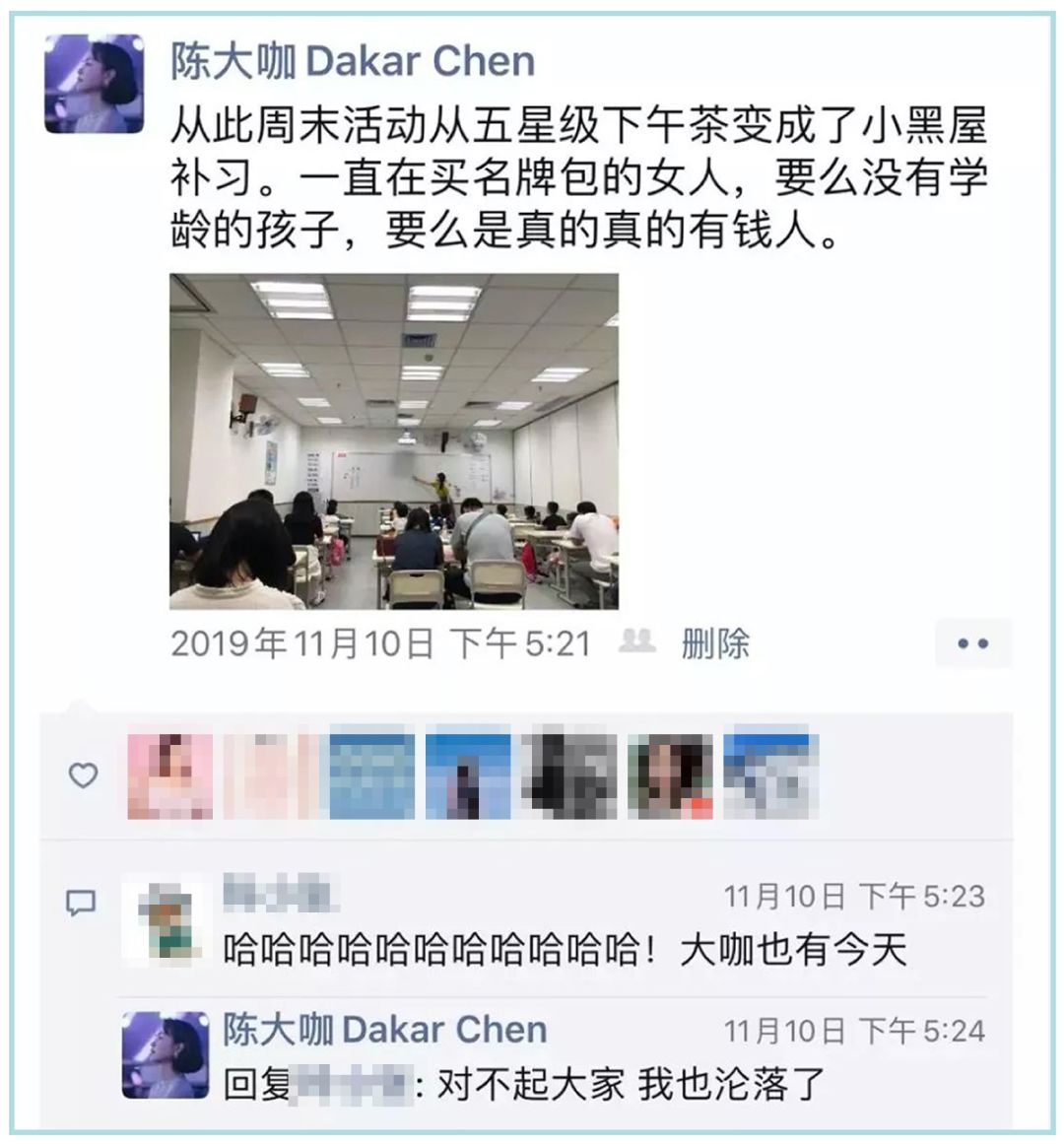 首要,我选了一个硬笔课。试听课却是挺廉价的,均匀一节课不到40元,我买了四节。班级是混龄的,除了有米一个大班的孩子,还有几个小学生,门口贴满了各种传闻得奖的硬笔著作,一个三十来岁横冲直撞的男教师,桌上几个吃了一半的砂糖橘,全部看起来还挺是个温馨的家庭作坊。