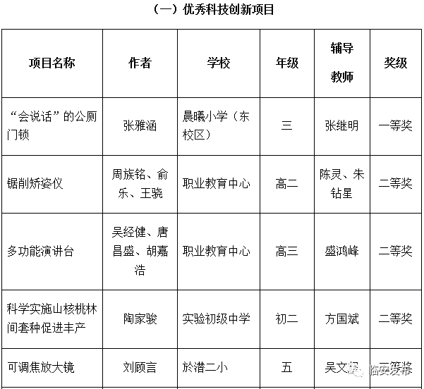 原标题:杭州市青少年科学技术创新大赛,临安区获奖名单!