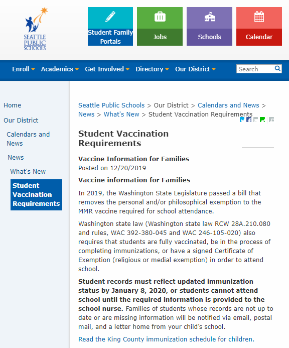 没有接种麻疹疫苗的学生们,被要求前往一家免费的政所接种。诊所的开放时刻为周一至周五,因而学生们有着充沛的时刻和理由去达到这项要求。