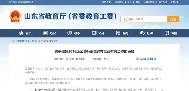 原标题:@山东2016级公费师范生 泰安临沂菏泽三市接纳跨市作业请求