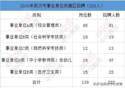 原标题:2020年武汉事业单位招1676人,武昌区招233人,不限工作经历