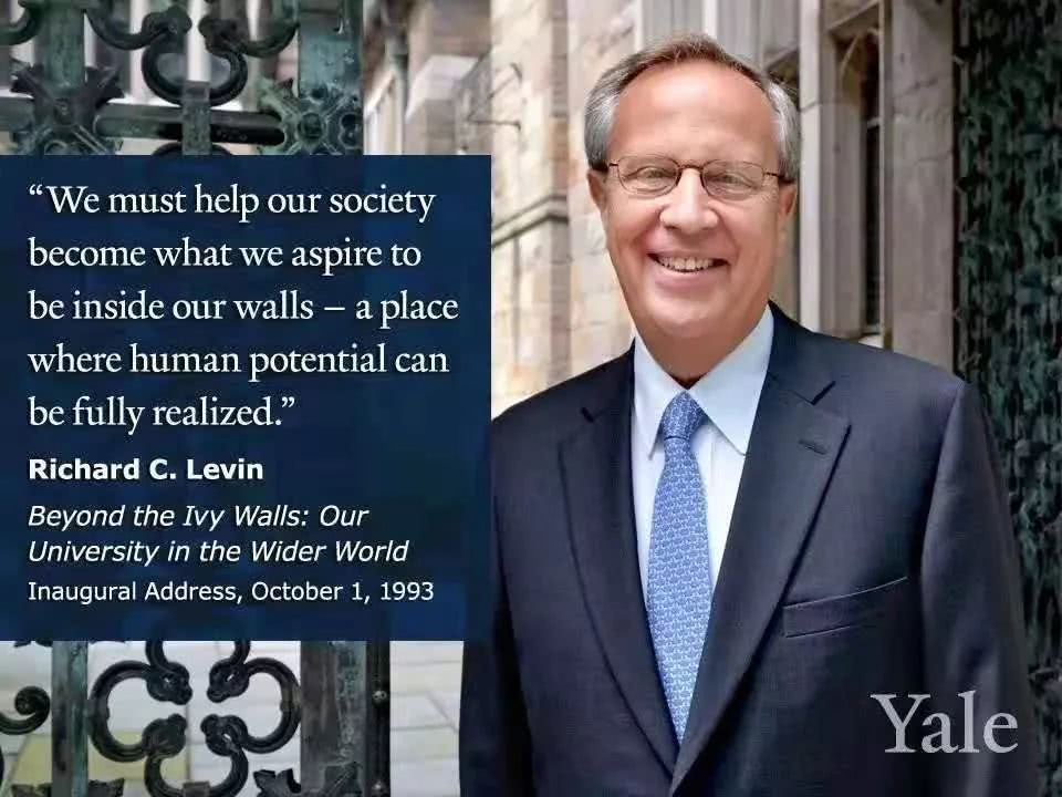 原耶鲁校长理查德·莱文:“大学有义务协助社会,让这个社会像大学相同,成为一个任何一个人都有时机充沛完成自己潜力的当地”。