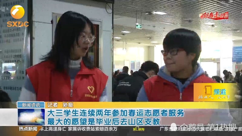 自愿者 张月明:新年是咱们国家的传统节日 能为旅客在回家的途中出一份自己的力气 我觉得就很高兴 尽管说我仅仅一个自愿者 我能做的也很少 可是能为国家的开展奉献一份菲薄之力 我觉得这便是我的人生价值百科,结业之后我是想去山区支教 我也想去协助山区那些孩子们走出大山 完成他们自己的人生抱负和方针
