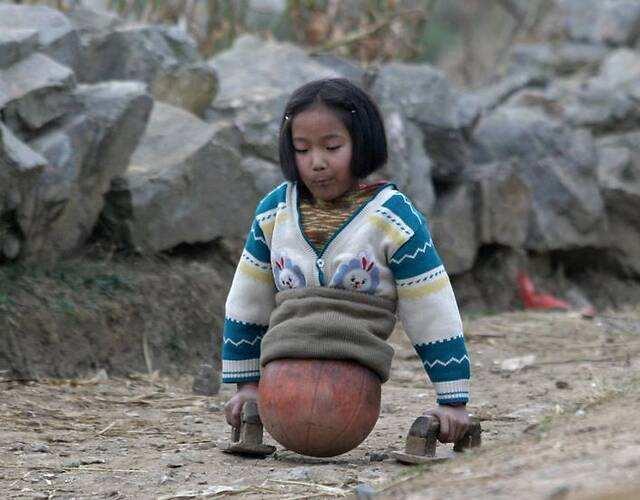 清贫的家庭并不能确保她术后的恢复和教育,甚至连一副假肢都难以供应,家人只能让她以一个寒酸的篮球当作下半身的支撑,靠一个篮球来行走。