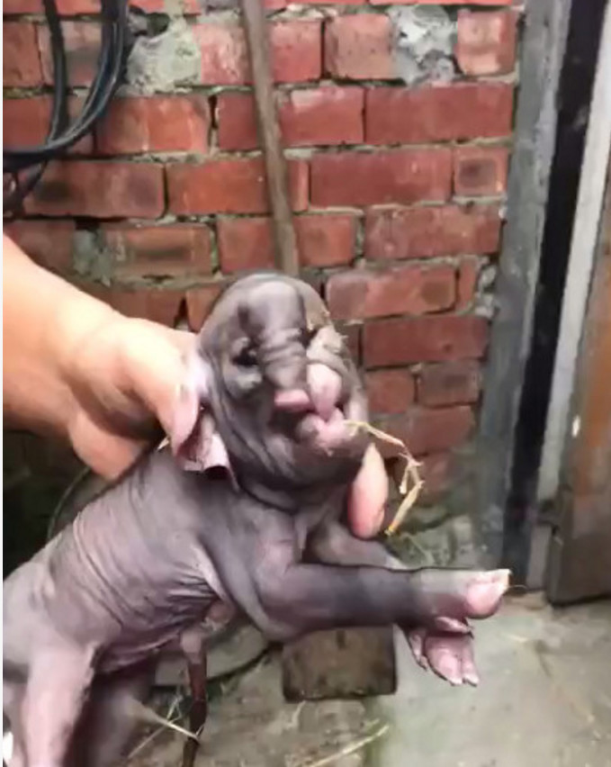 这只小猪脸上长出了一只脚的姿态,鼻子跟那只脚长在了一同。从侧边看像一只小象,可是他确实是母猪生下来的小猪崽儿。这只小猪崽儿,无论是从眼睛耳朵,仍是鼻子来看都是奇丑无比的,在自家宅院里看见了这么一个怪物,可想而知主人的心境是怎样的。