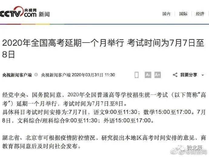 究竟由于疫情高考都拖延了一个月