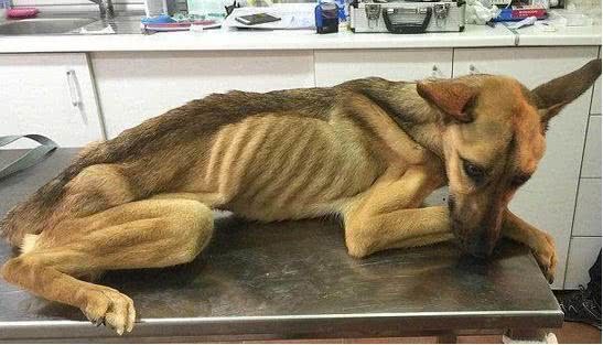 在西班牙有一只不到一岁的漂泊狗,长时间粮食缺少营养不良,分明是大型犬的体型,体重却只有7.5公斤,瘦到肋骨都清晰可见!动保集体接获通报赶到现场救援时,都不敢相信这么衰弱的狗狗,竟然还能存活下来!