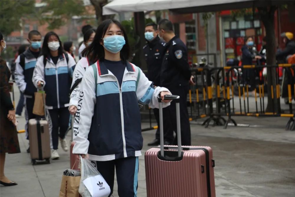 泉州七中办公室副主任谢仰进和记者说,为防止人群扎堆,在鲤城交警大队三中队的帮忙下,在校门口设置阻隔护栏。“有些学生行李太多,教师会帮忙将行李搬至校内。”