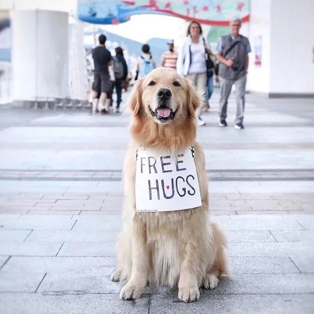 这只名叫Scout的金毛住在美国俄勒冈州,是一只医治犬,捡屎官常常带着它外出,挂上“免费抱抱(free hugs)”的牌子,帮路过的行人充电,取得一天的新能量。